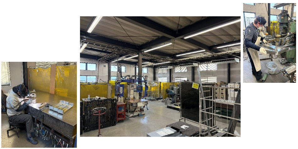 製品の形状は多岐に及び、特に板金でつくる機械や装置のカバー類は、商品のイメージを高めることを目的として、アール形状など金属板で加工するには困難を要するデザイン性を意識した設計が多く、曲げる技術は高いレベルでの作業が必要になる。曲げる金型を自前で準備するなど、曲げの経験が40年以上の社員が4名存在して、若手への指導を行いながら日々の活動を行っている。AI時代の昨今、アナログとデジタルの融合が私たちの自慢です。