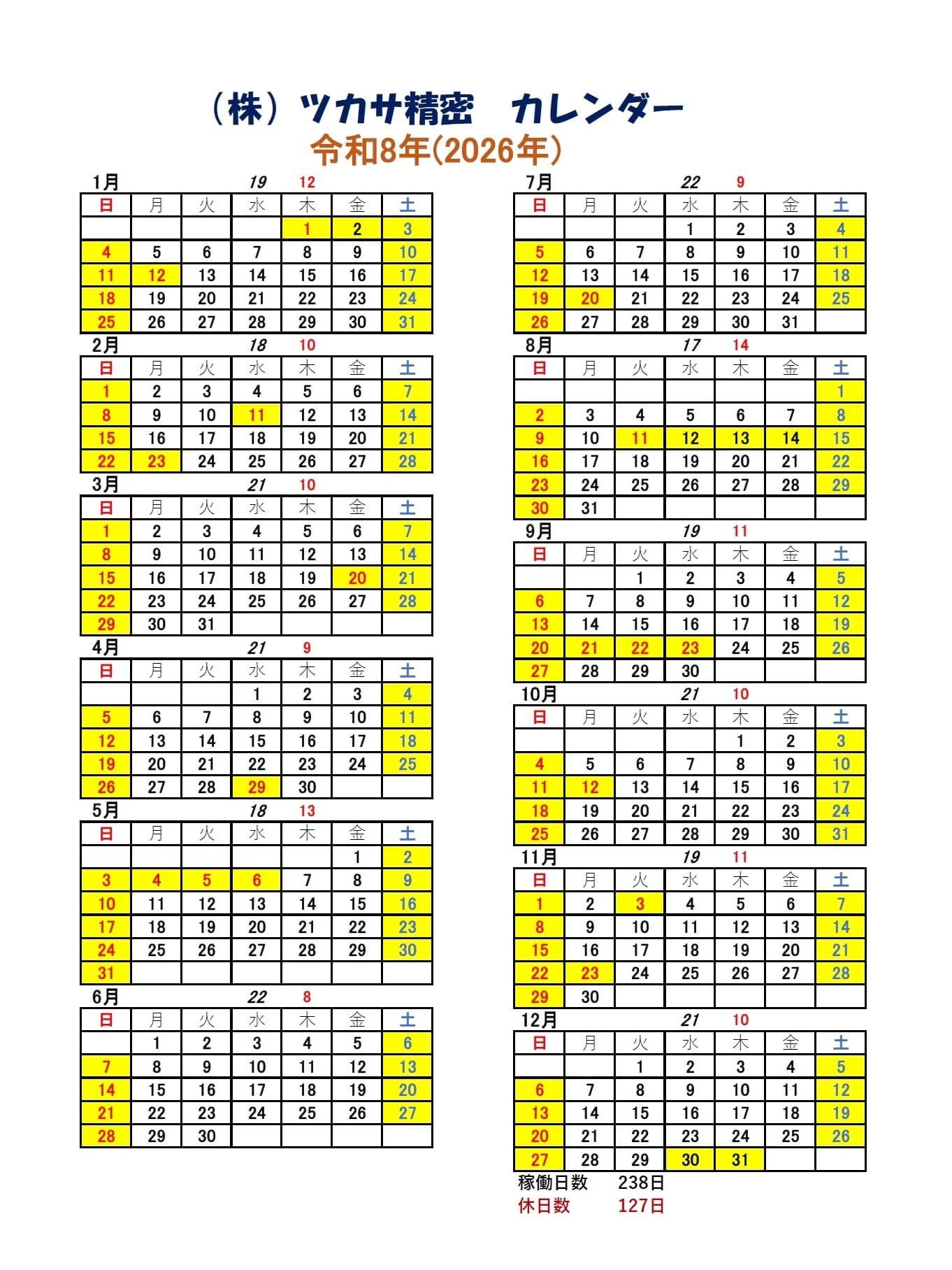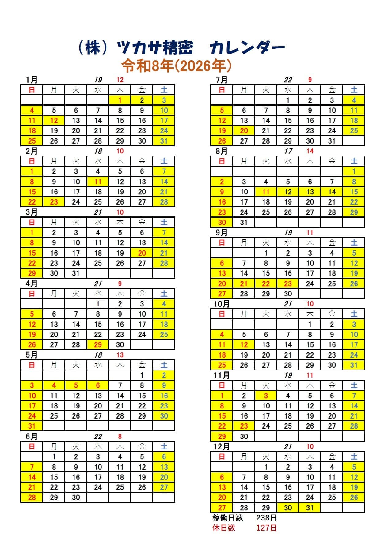 会社カレンダー